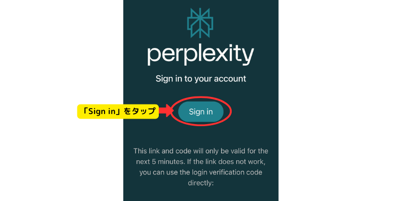 ⑤登録メールアドレスに届いたメールからPerplexityアプリに入る